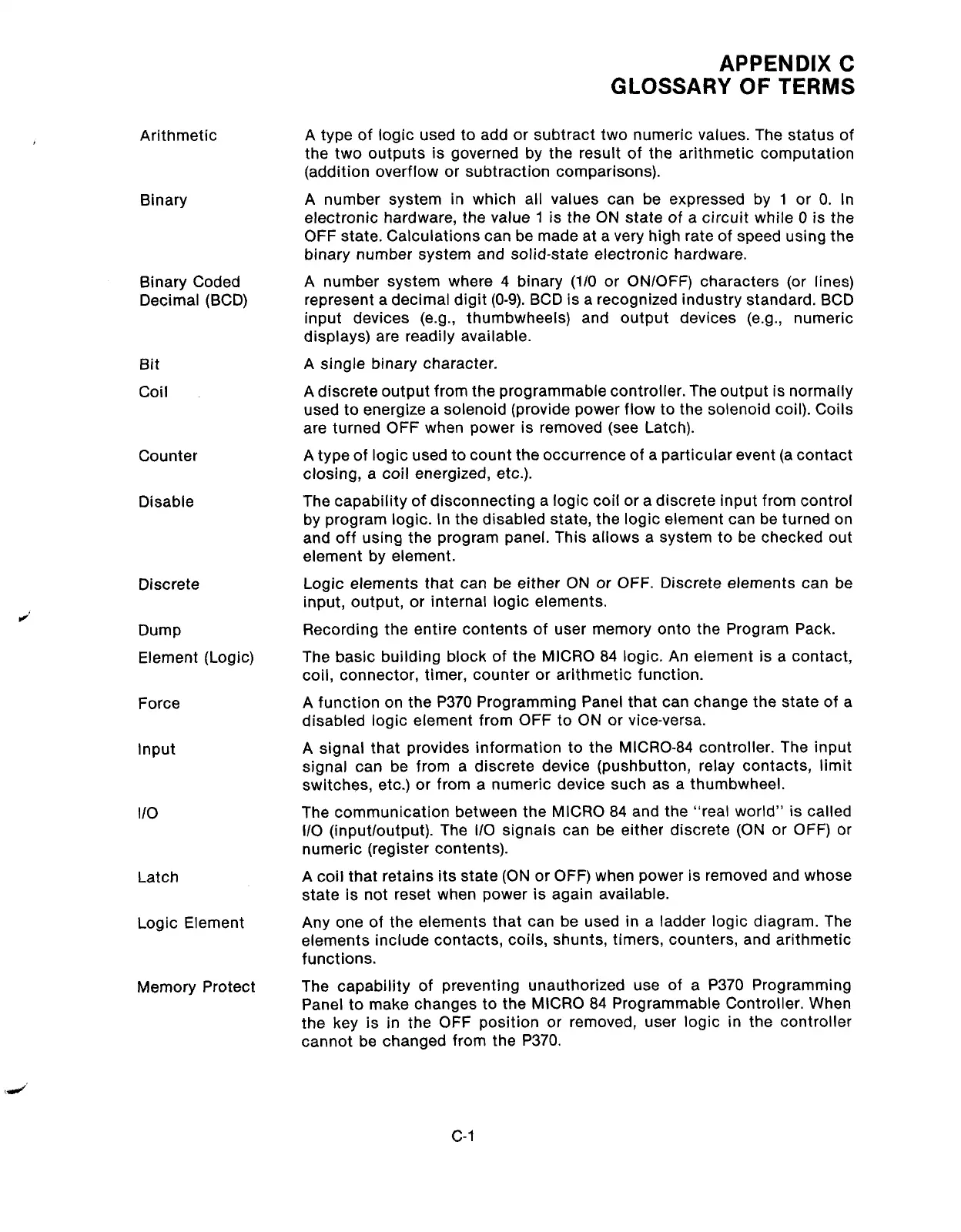 Panel to make changes to the MICRO 84 Programmable Controller. When