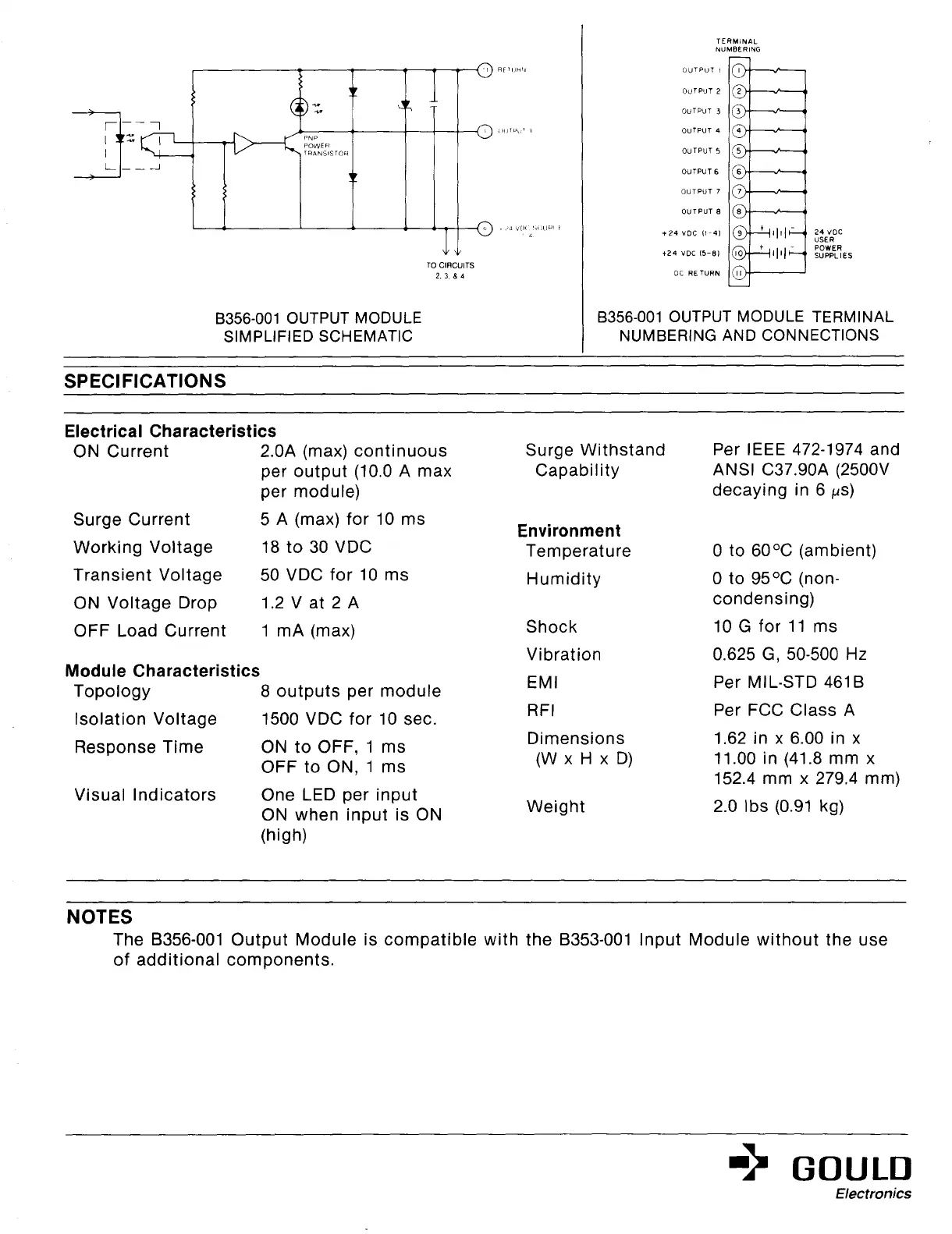 The B356-001 Output Module is compatible with the B353-001 Input Module without the use