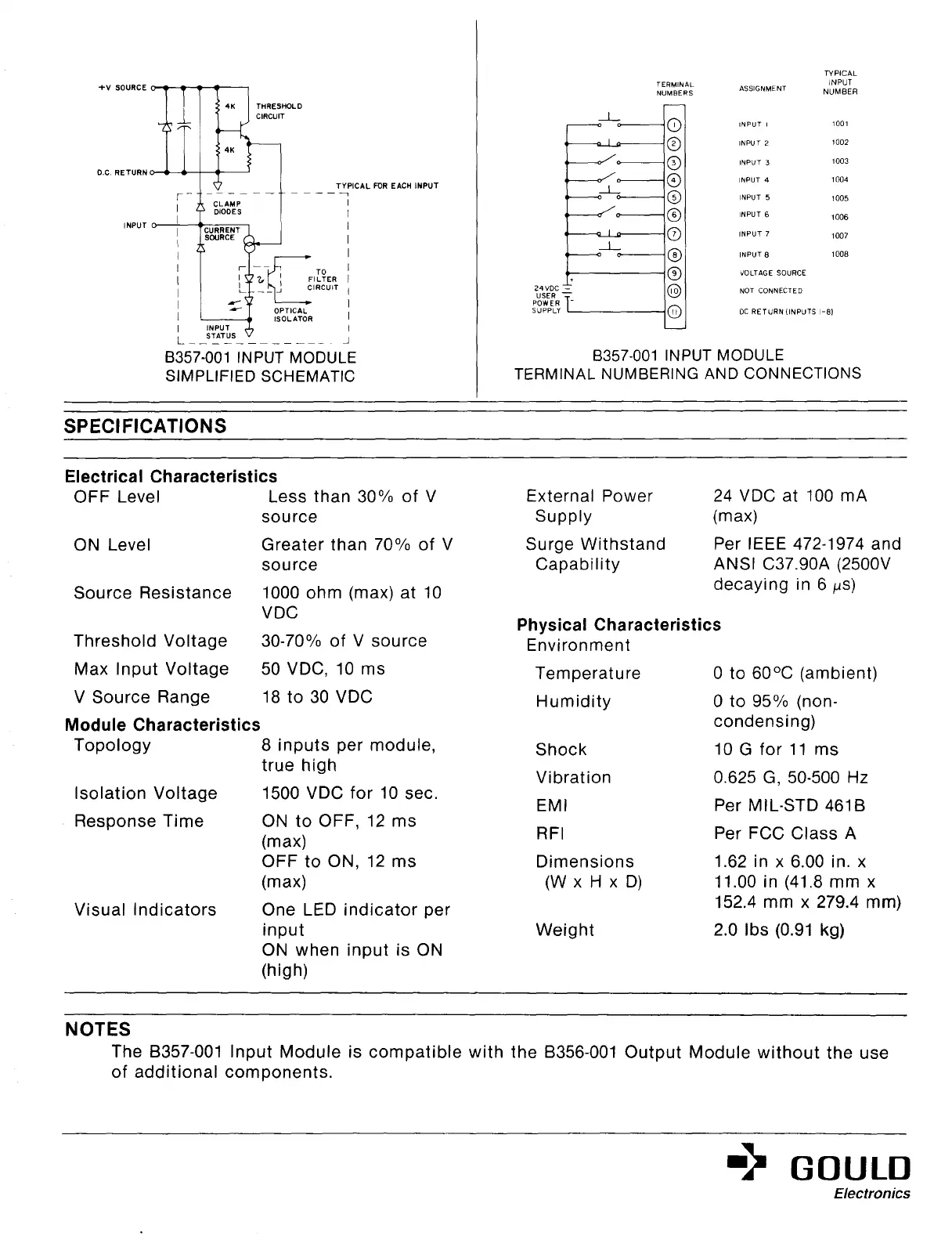 The 6357-001 Input Module is compatible with the 8356-001 Output Module without the use