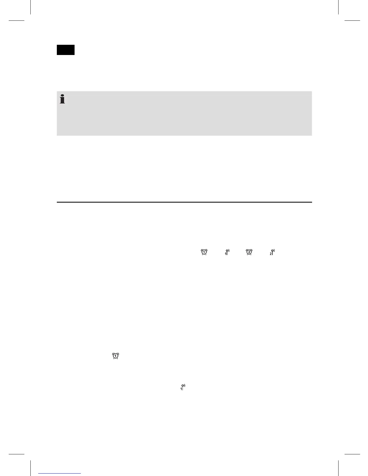 • Ist die Weckzeit erreicht, blinkt ein Punkt bei oder bzw. oder .