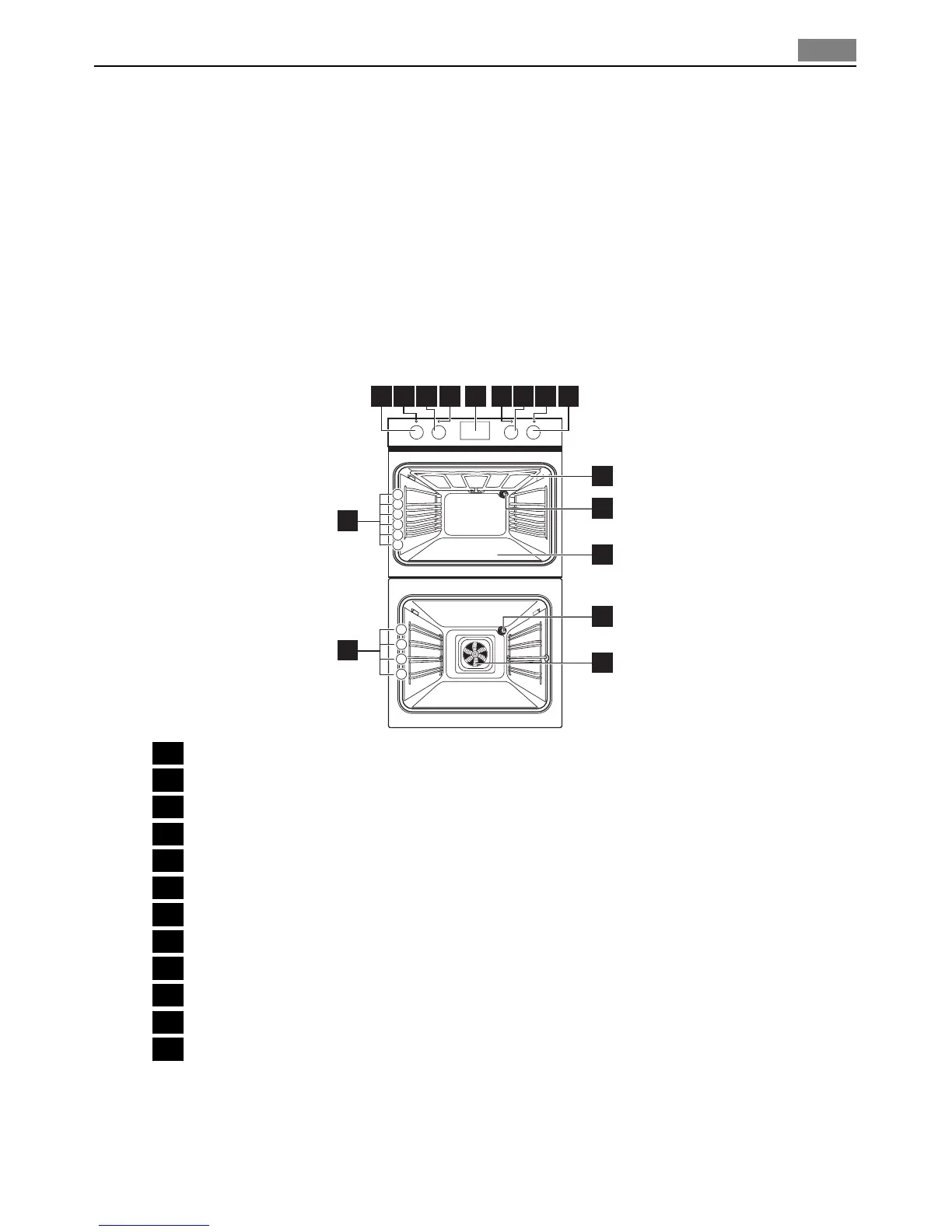 3 Knob for the top oven temperature