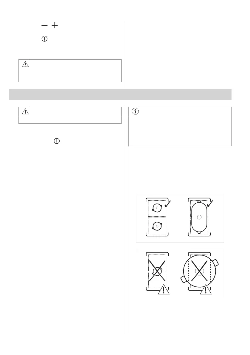 selected zone. Induction cooking zones adapt