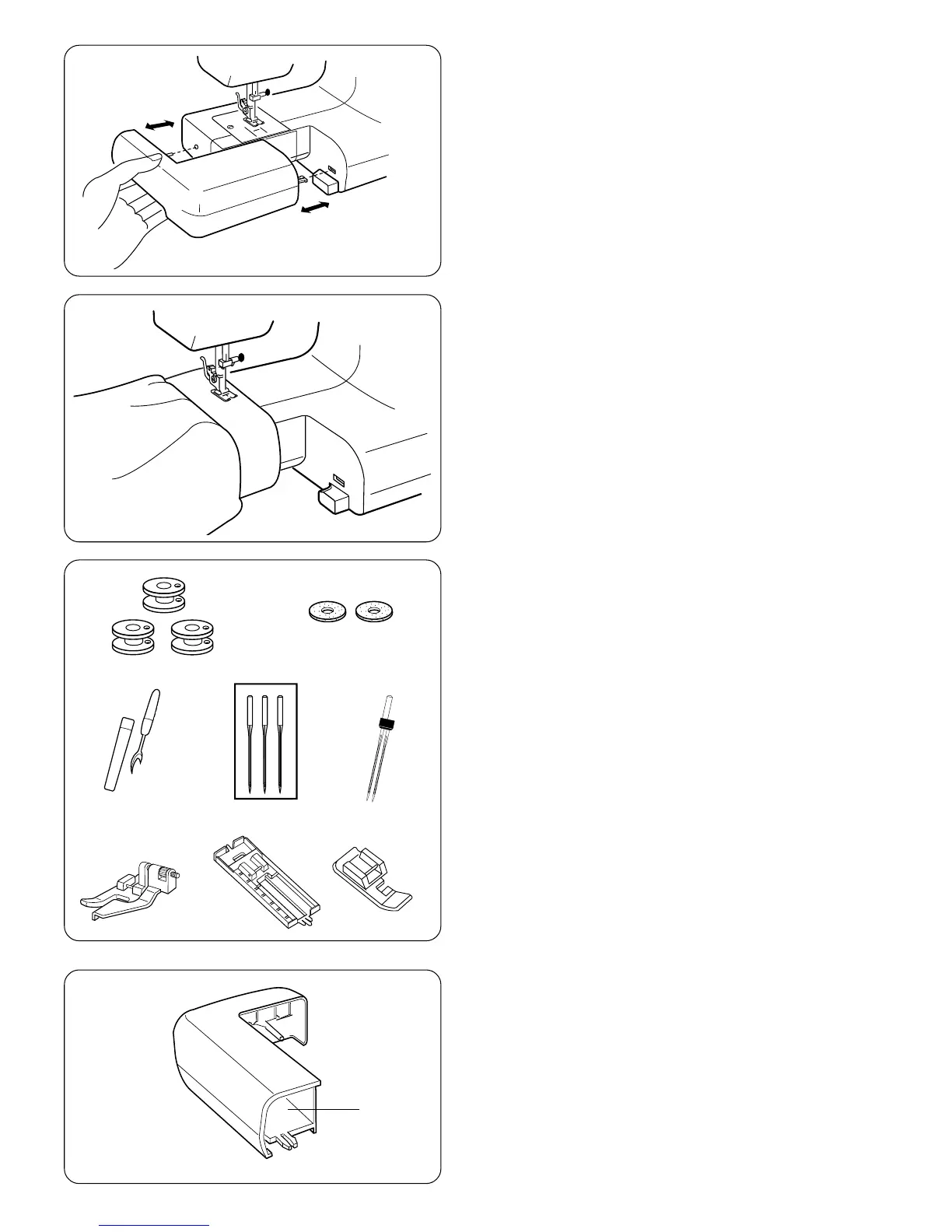 Sewing accessories are conveniently located in the