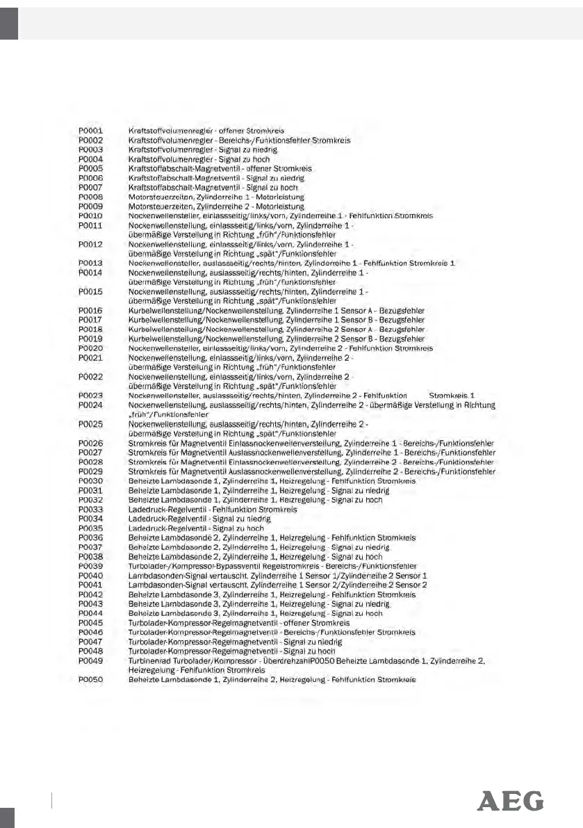 AEG OL8000 - Fehlercodes