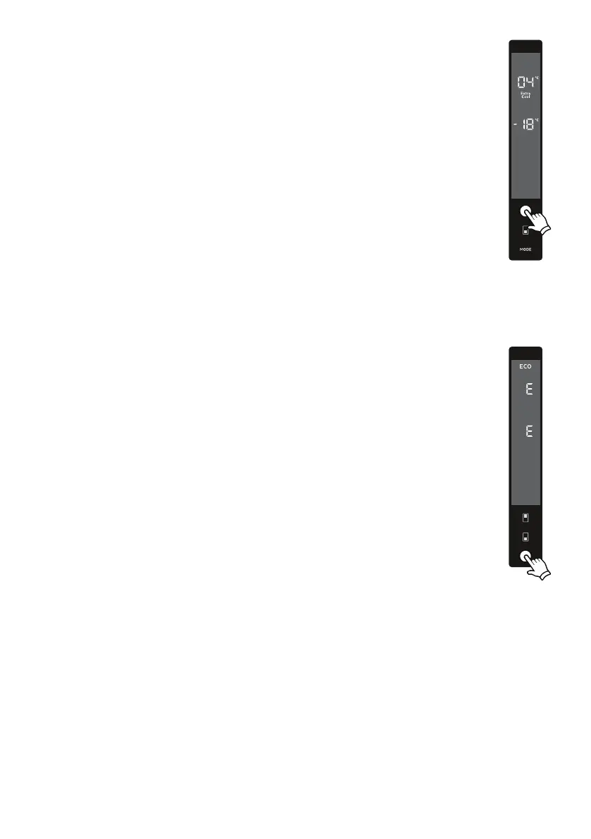 • Freezer and refrigerator temperature segments will show "E".