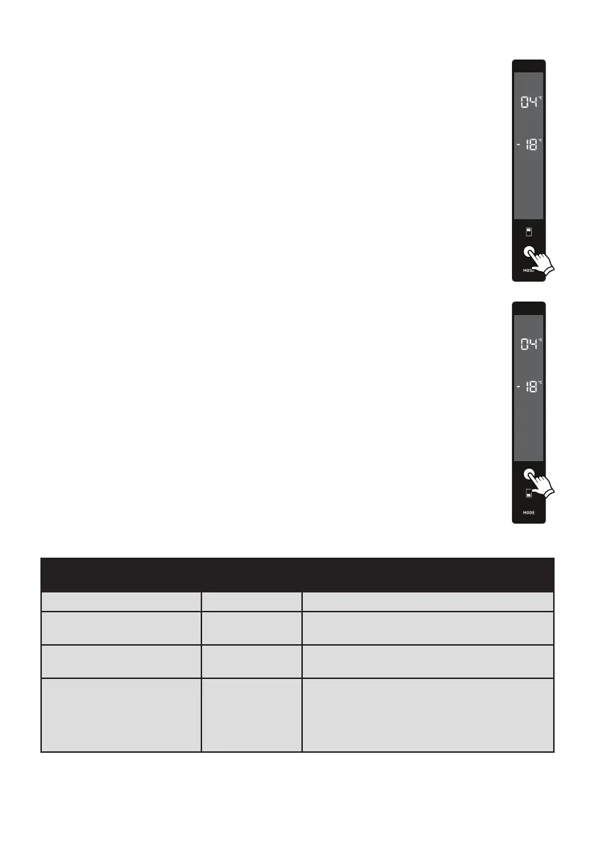 • The initial temperature value for the freezer setting indicator is -18°C.
