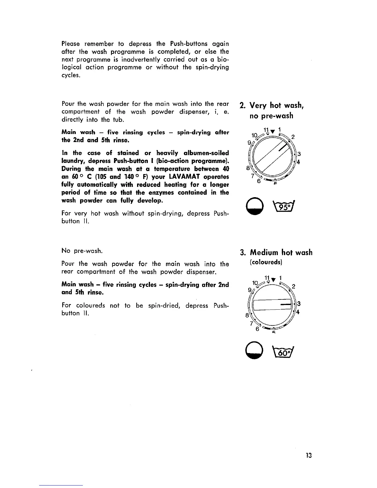 AEG PRINCESS S - Specific Wash Programmes; Programme 2: Very Hot Wash (No Pre-wash); Programme 3: Medium Hot Wash (Coloureds)
