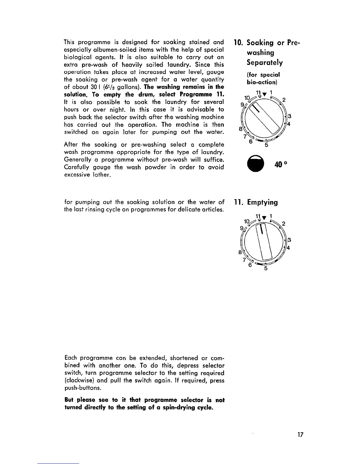 AEG PRINCESS S - Soaking and Emptying Programmes; Programme 10: Soaking or Pre-washing Separately; Programme 11: Emptying