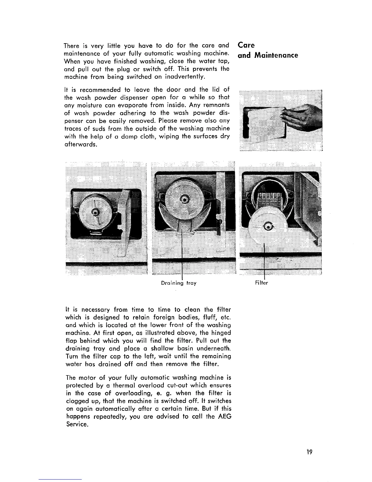 AEG PRINCESS S - Care and Maintenance; Routine Cleaning and Upkeep; Filter and Draining Tray Cleaning