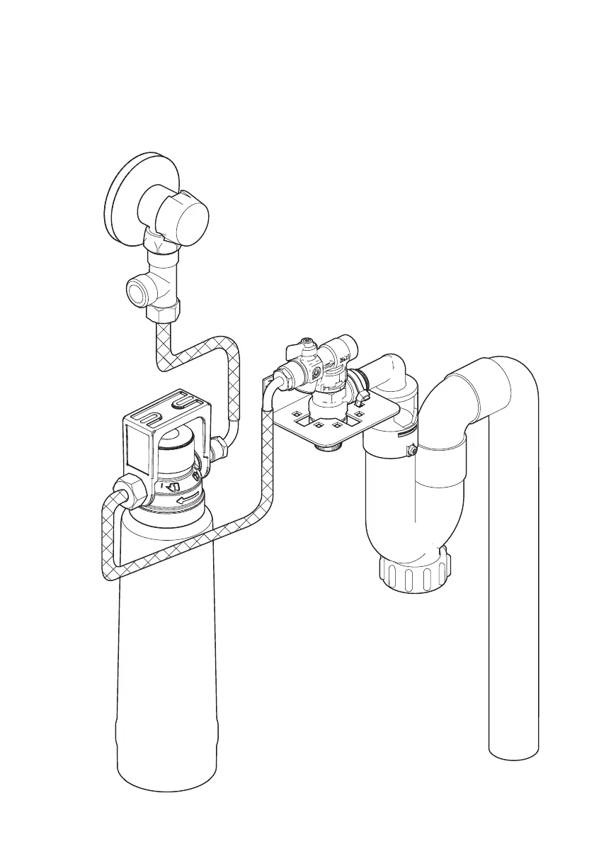 15 Connect cold water hose to filter and pressure safety valve