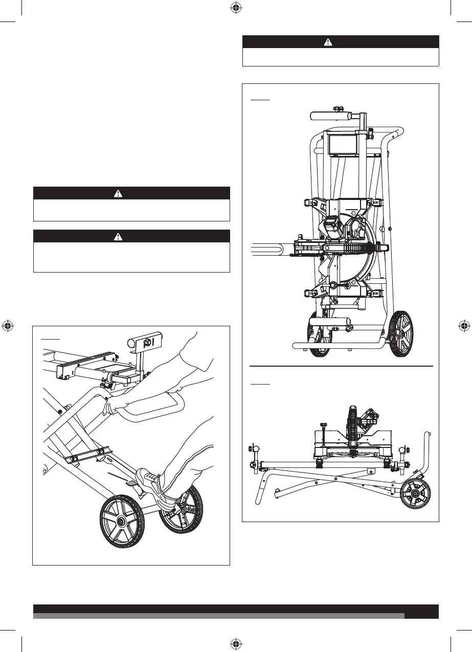 NOTE: ALWAYS move mounted saw opposite the wheeled end of