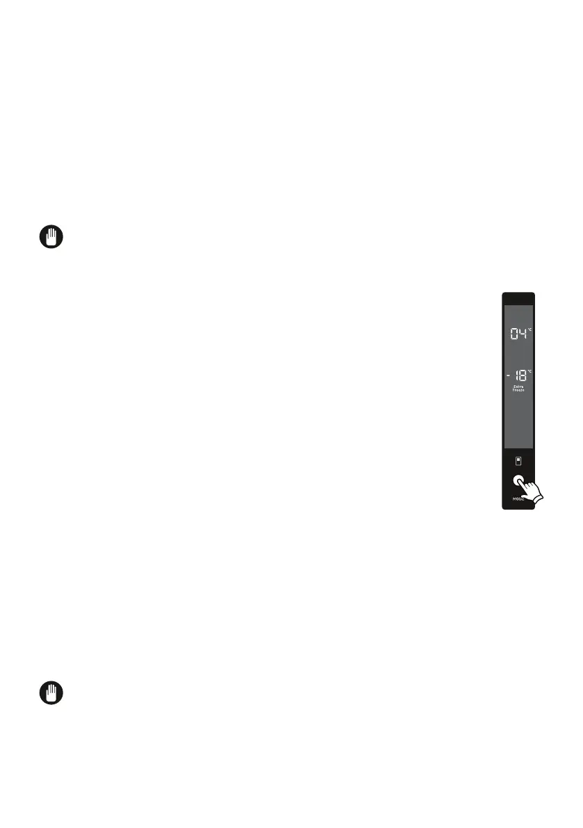 Appuyer sur la touche de réglage du congélateur jusqu’à ce que le symbole Super