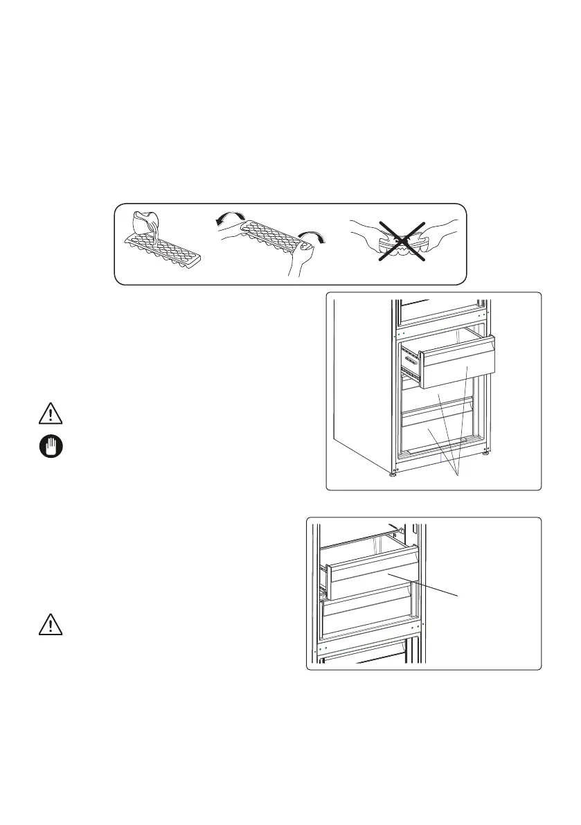 • Une fois que l’eau a complètement gelé, il est possible de tordre le bac à glaçons comme