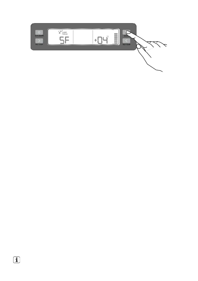 • Appuyer sur le bouton Mode jusqu’à ce que le symbole Super Congélation s’allume.