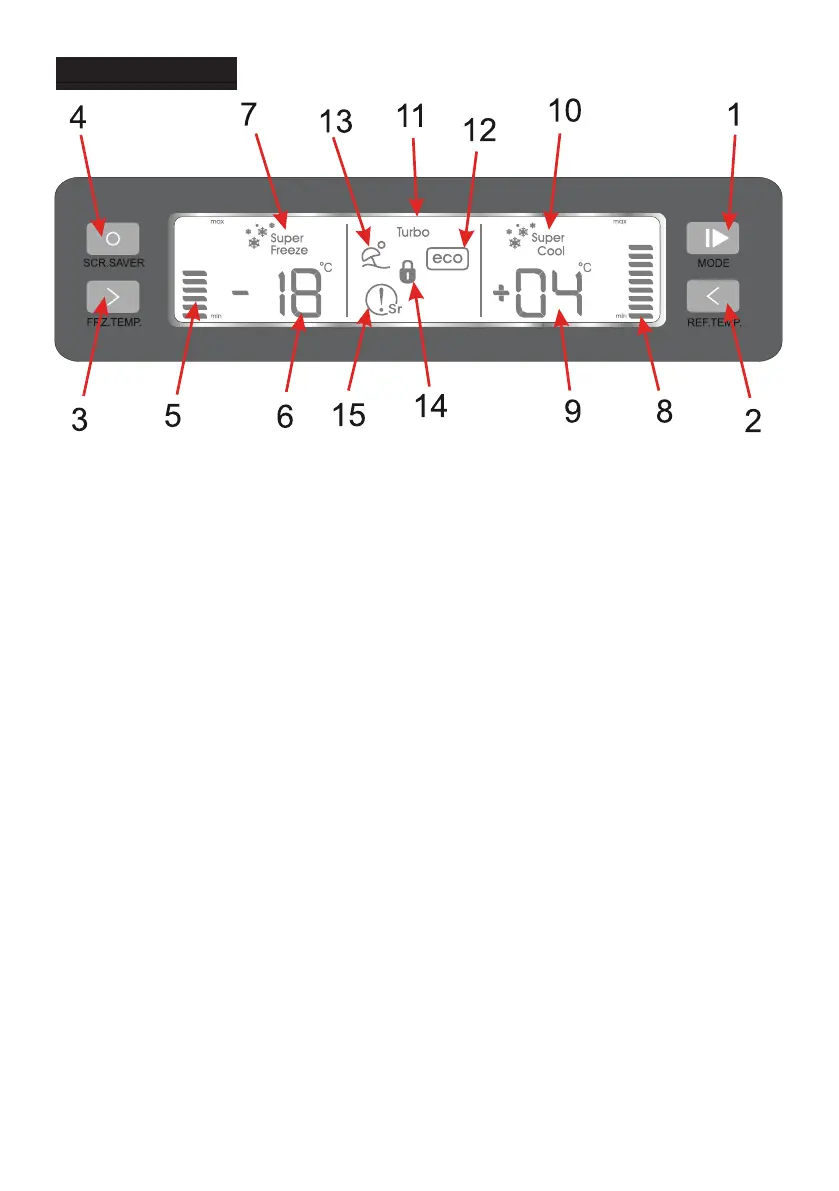 6. Indicador de temperatura ajustada del compartimiento del congelador