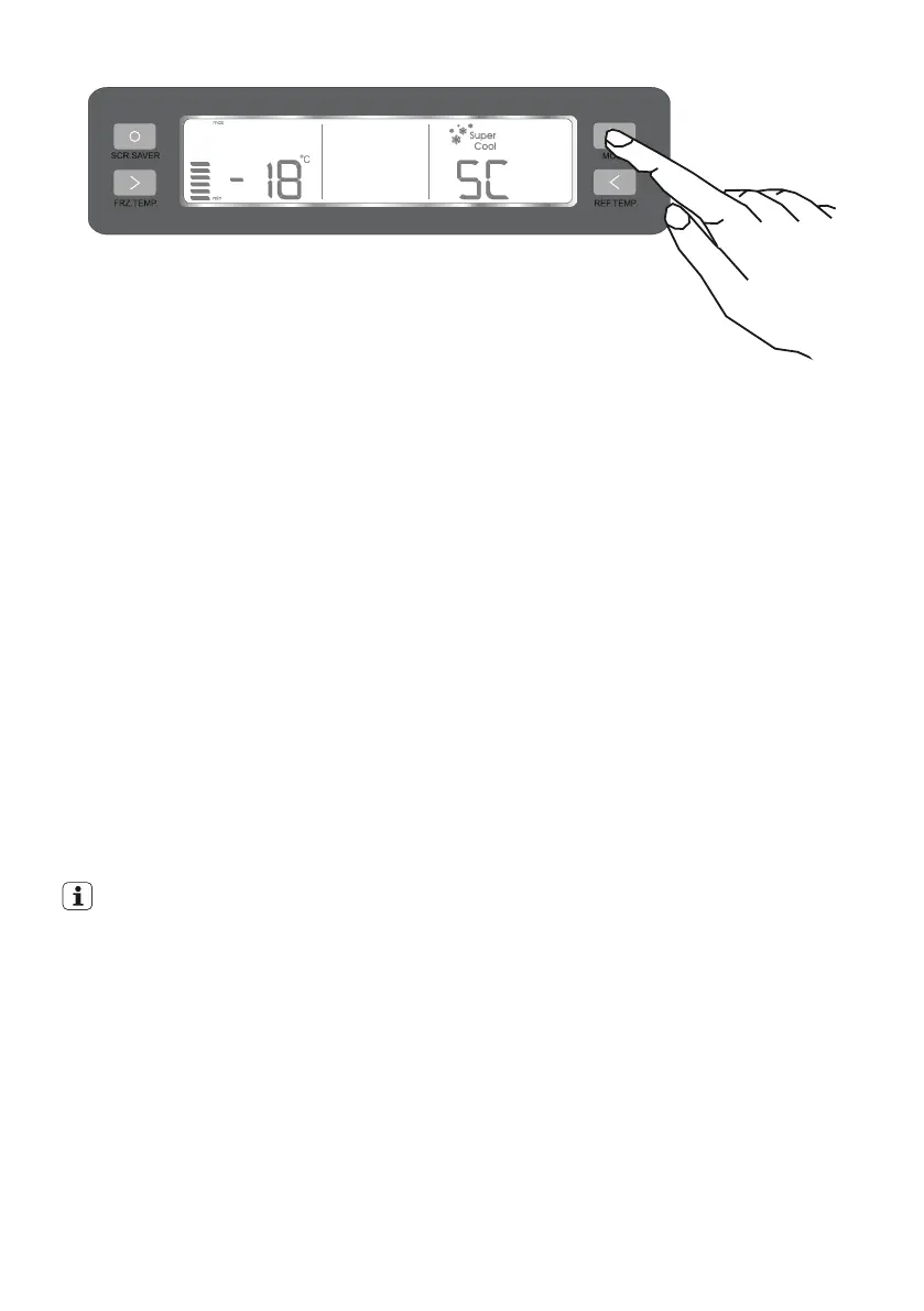 • Pulse el botón de Modo hasta que se encienda el símbolo de Súper Enfriamiento.