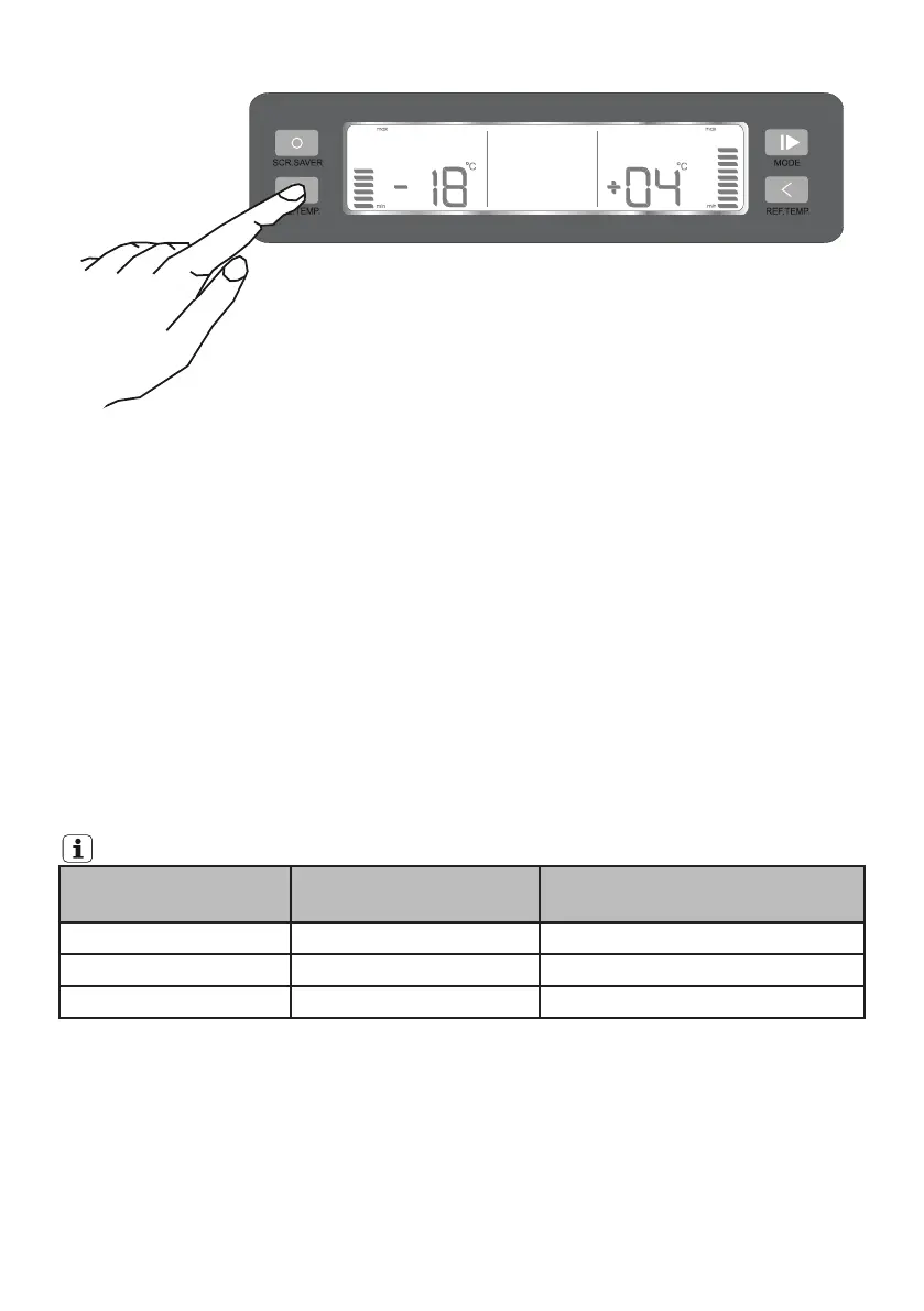 pulsa el botón "FRZ. TEMP" en 2 segundos El segmento mostrará -18°C.