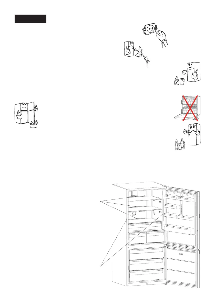 • Do not wash your fridge by pouring water into it.