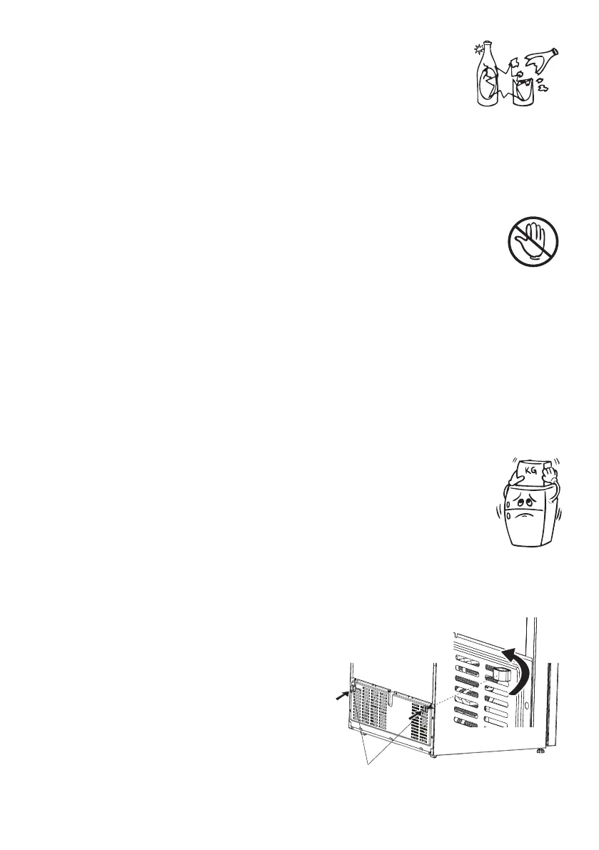 • Do not place explosive or ammable material in your fridge. Place drinks