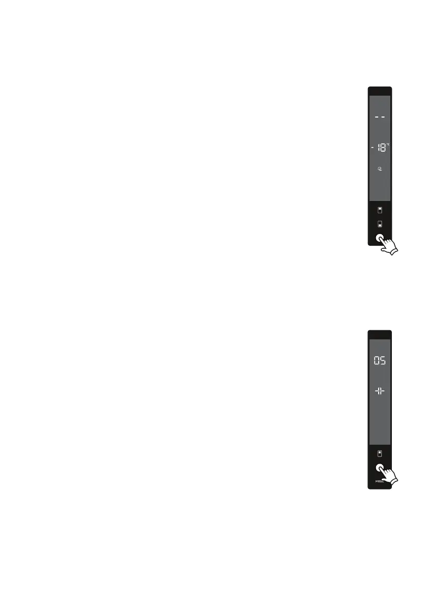 • Die Gefriertemperaturanzeige wird animiert und an der Kühltemperaturanzeige
