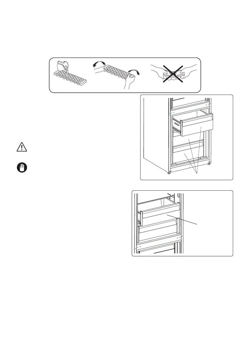 • Füllen Sie die Eiswürfelschale mit Wasser und legen Sie sie in das Gefrierteil.