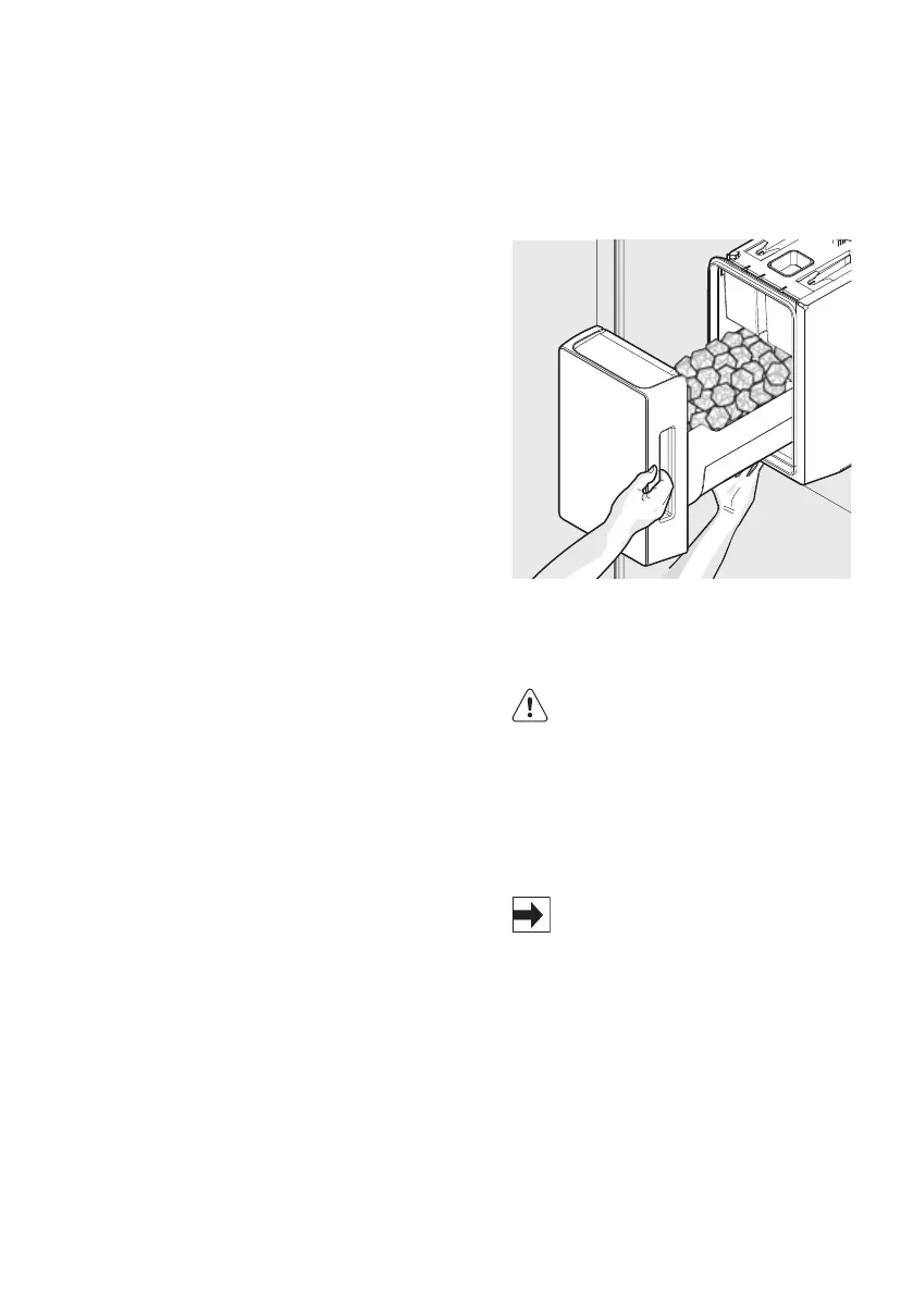 Fjern og tøm isbeholderen,