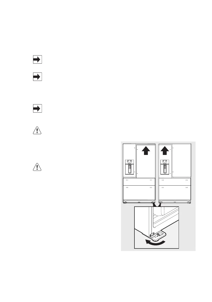 • Skabets re hjørner skal hvile fast