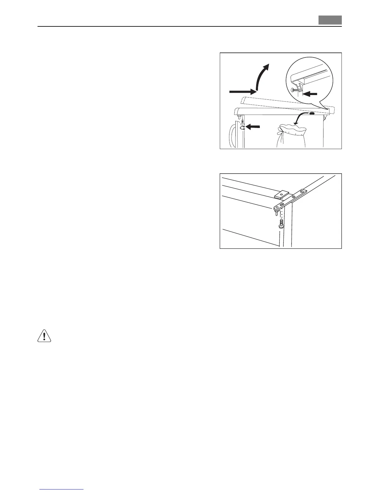 fix the appliance under the worktop through the upper door hinge. If necessary, equalise