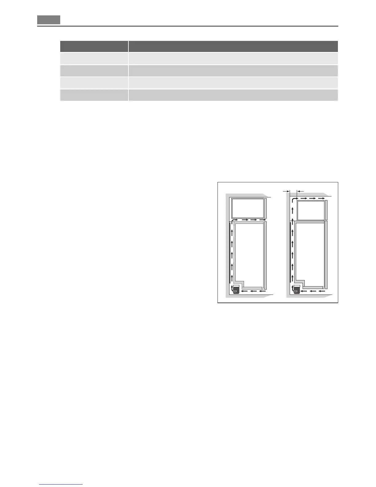 between the wall and the cabinet must be at least 230 mm to allow the door to open