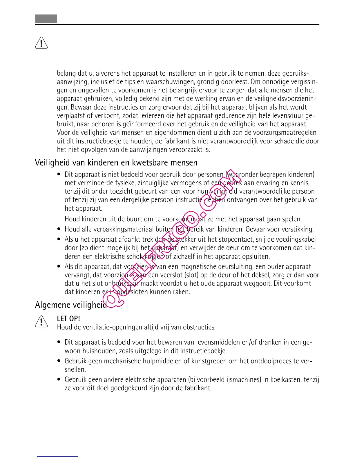 • Dit apparaat is niet bedoeld voor gebruik door personen (waaronder begrepen kinderen)