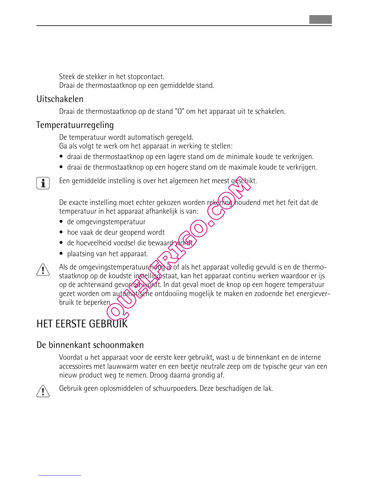 • draai de thermostaatknop op een lagere stand om de minimale koude te verkrijgen.