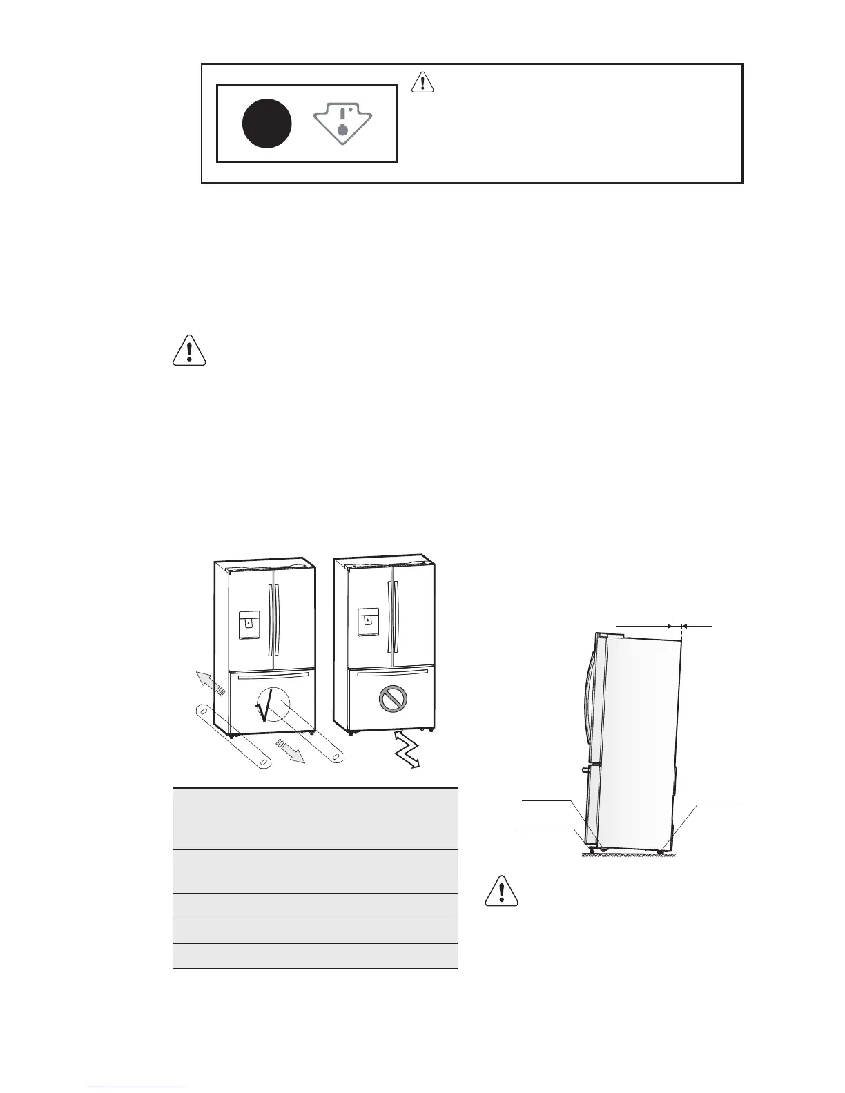 para trás. Deslocar o frigorífico