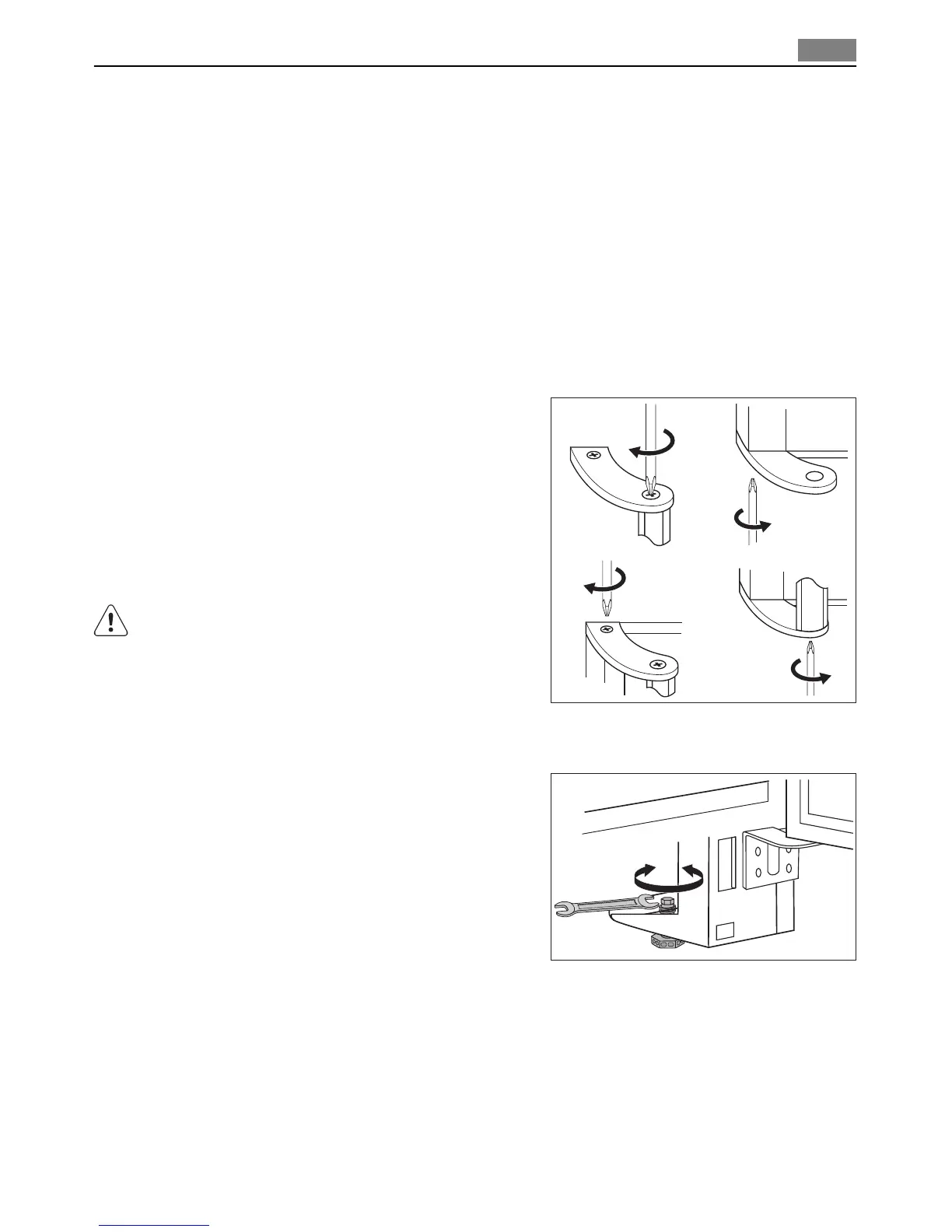 level. If necessary adjust the feet using the adjust-