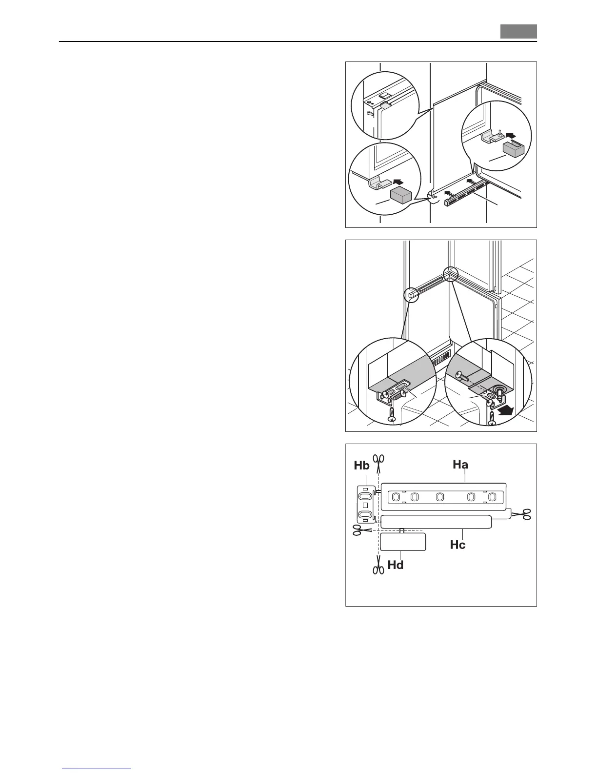 Attach the hinge covers (E) to the hinge.