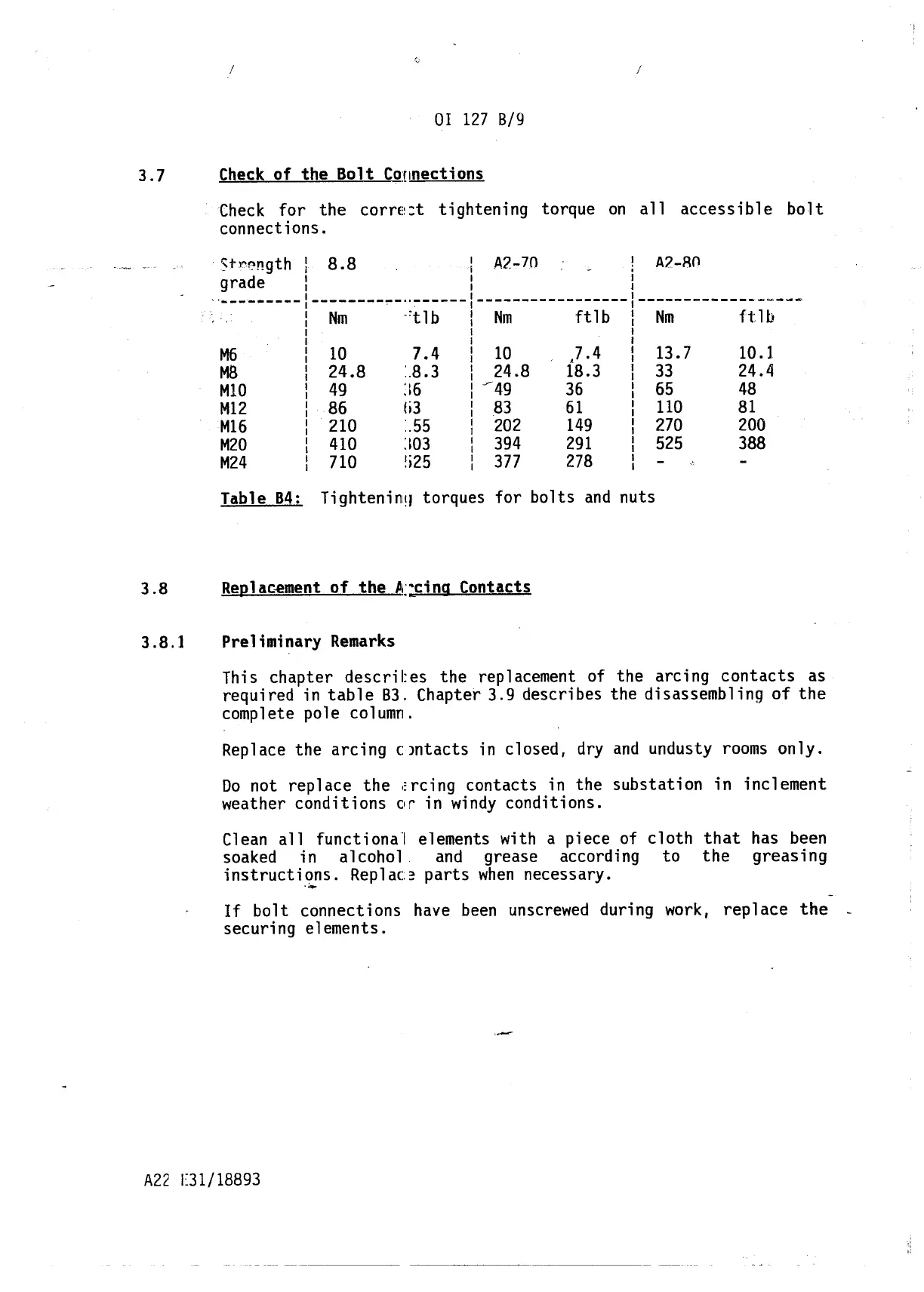 required in table 83. Chapter 3.9 describes the disassembling of the