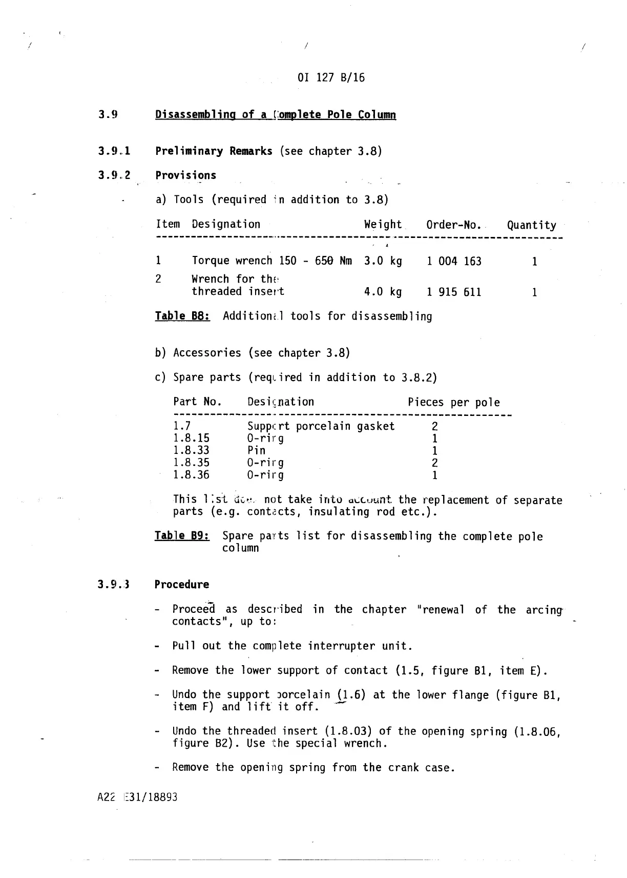 - Undo the support )orcelain (1.6) at the lower flange (figure B1,