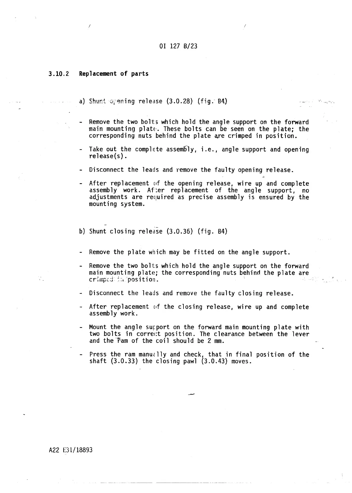assembly work. Af:er replacement of the angle support, no