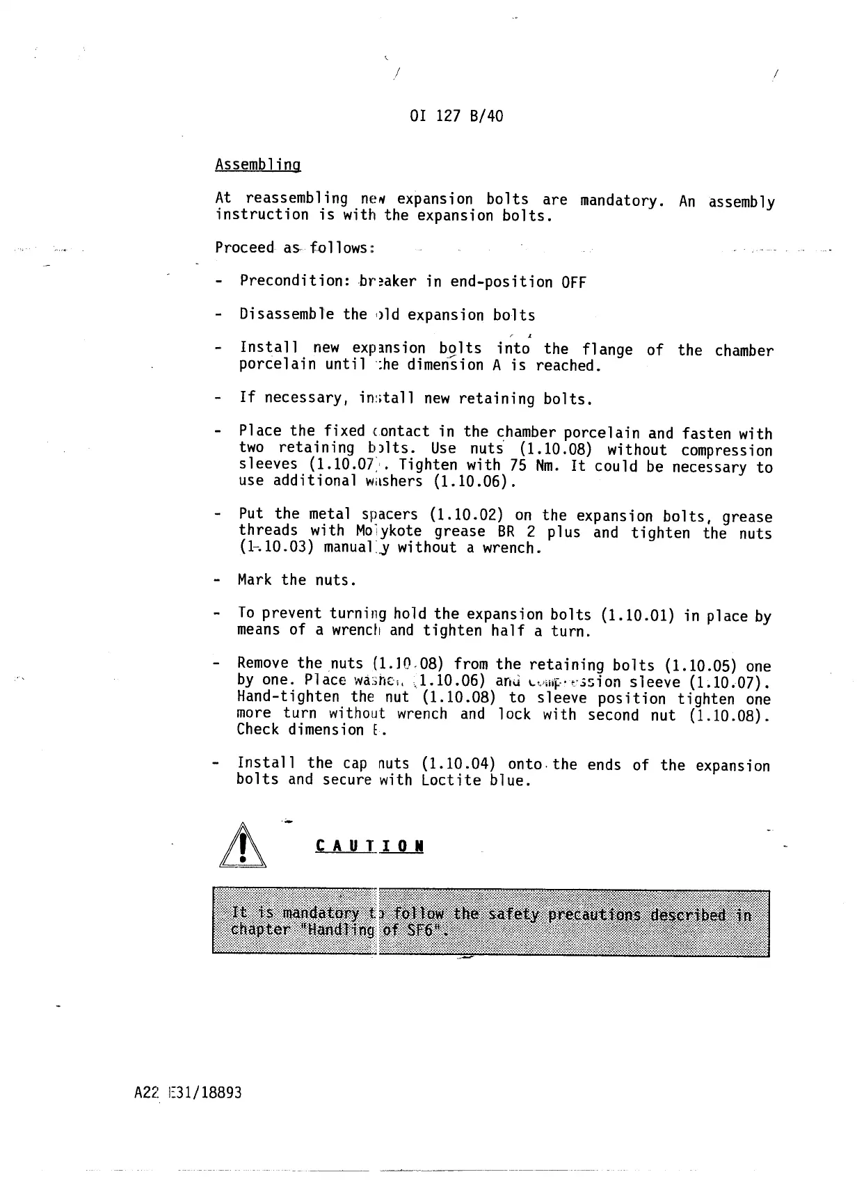 At reassembling nel'l expansion bolts are mandatory. An assembly