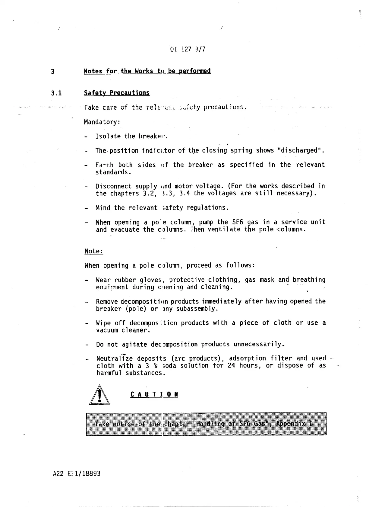 and evacuate the cl)lumns. Then ventilate the pole columns.