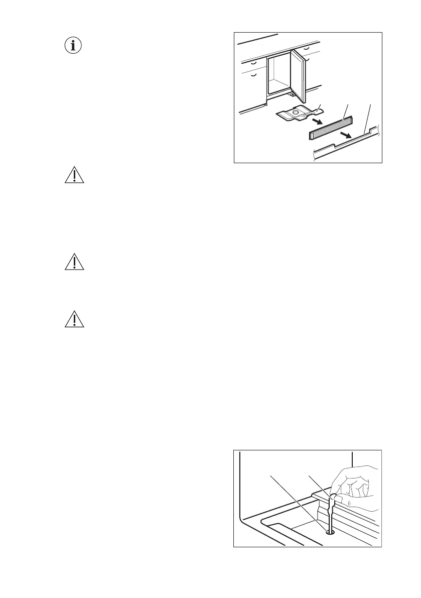 1. Retire o rodapé (A) e depois a grelha