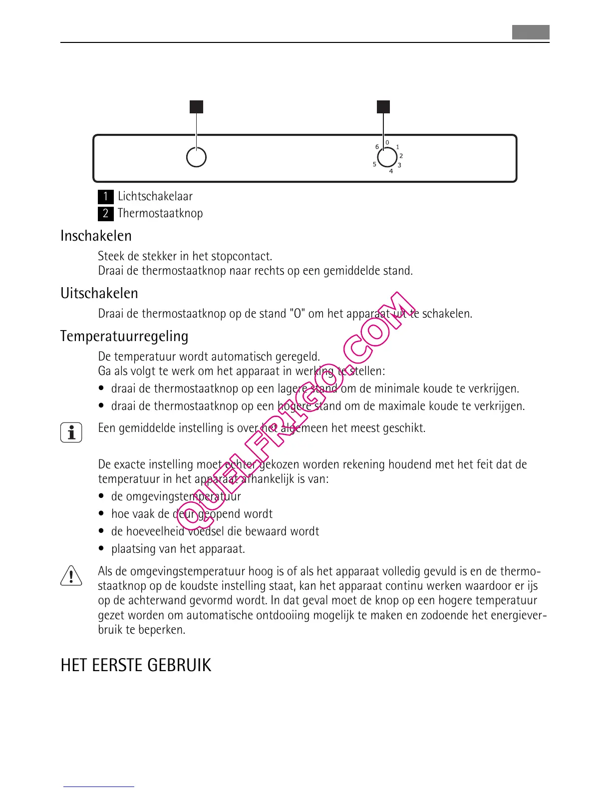 • draai de thermostaatknop op een lagere stand om de minimale koude te verkrijgen.