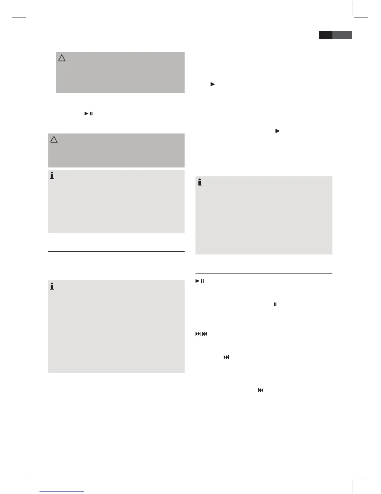 Premere 3 x = Riproduce il brano precedente ecc. Tenere