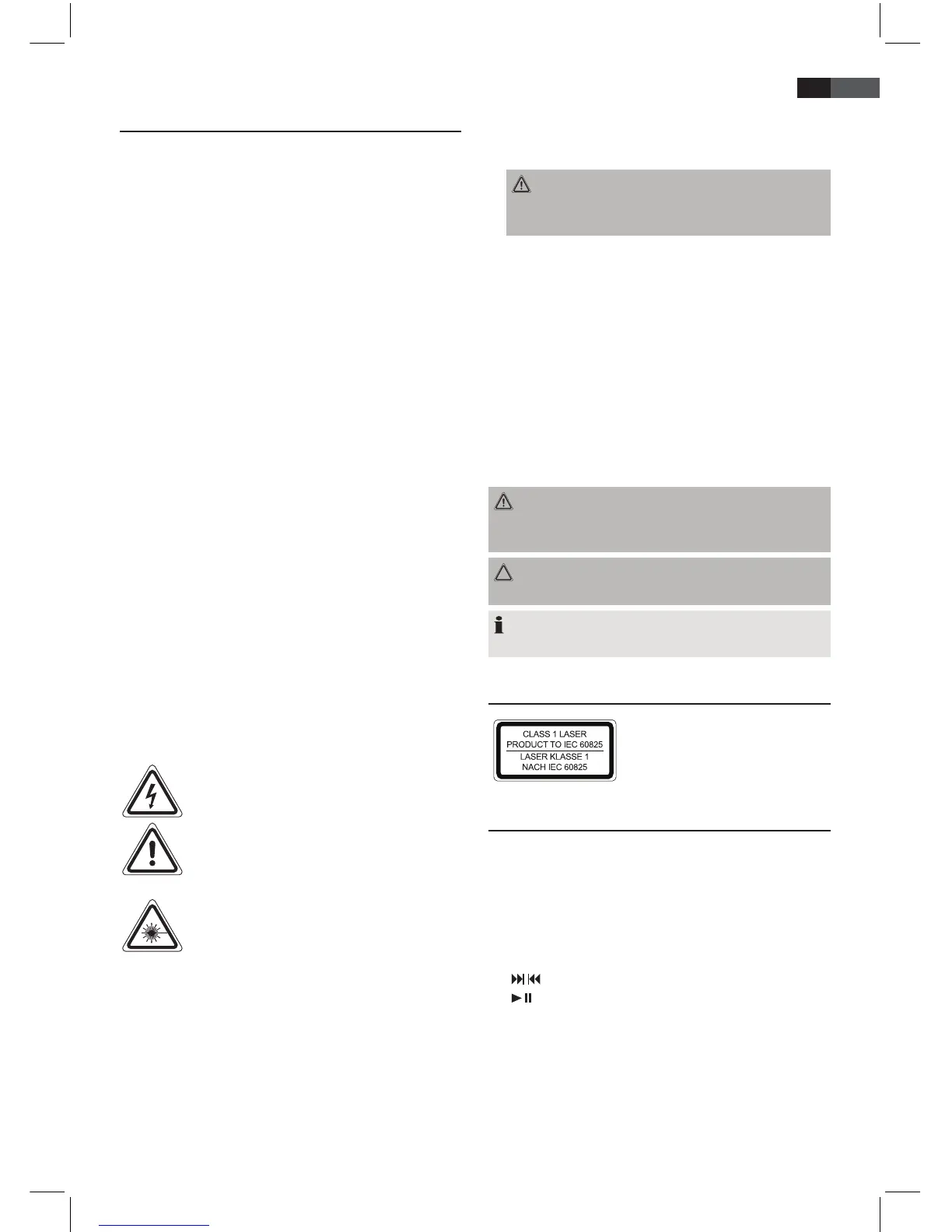 “Class 1 Laser” for scanning the CD. The built-