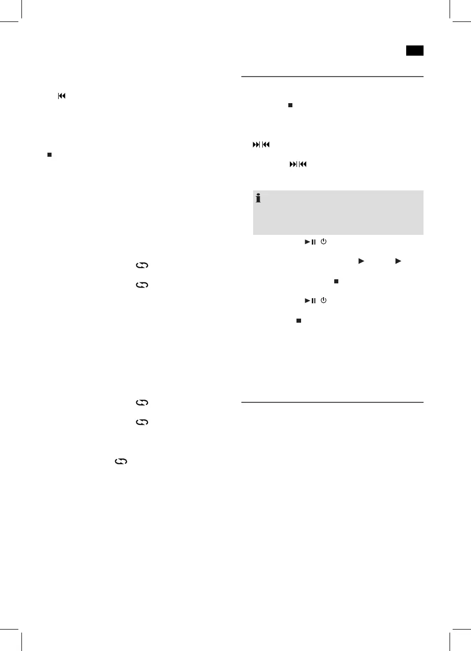 2 x indrukken = Speelt een eerdere titel enz. Wanneer u de