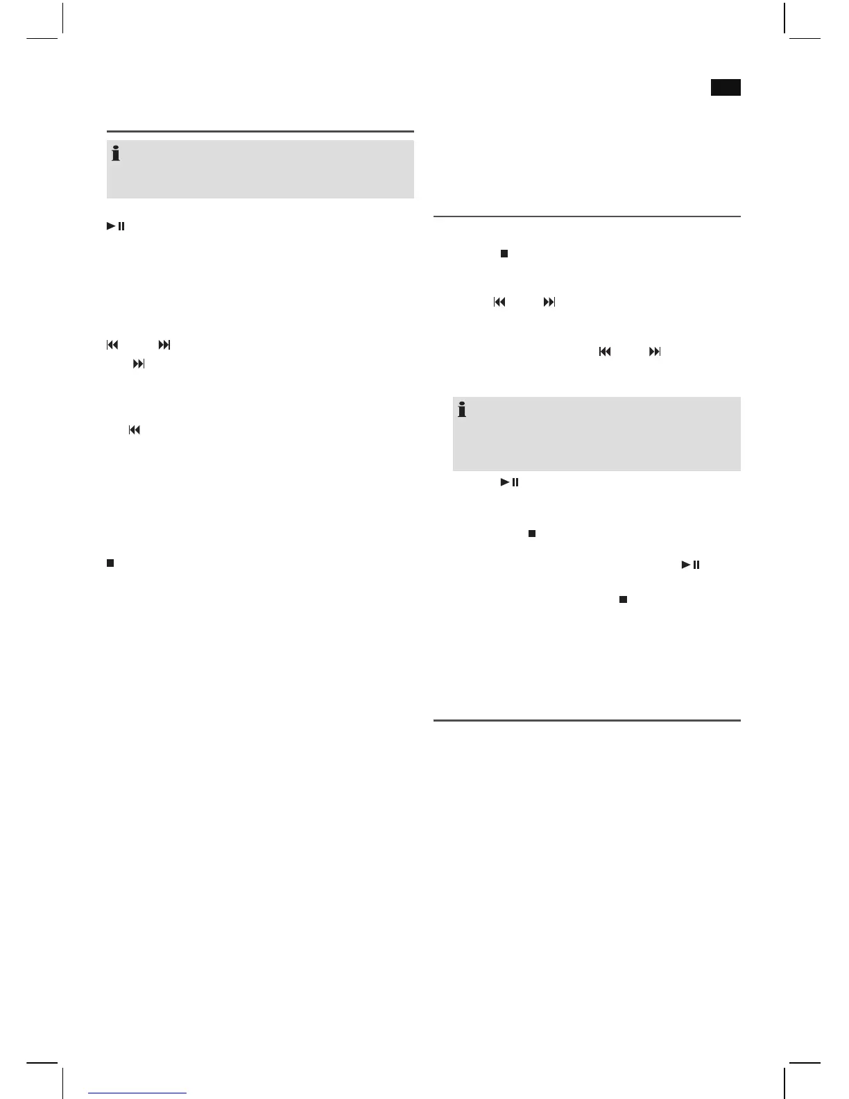 • You can briey interrupt and resume playback using this