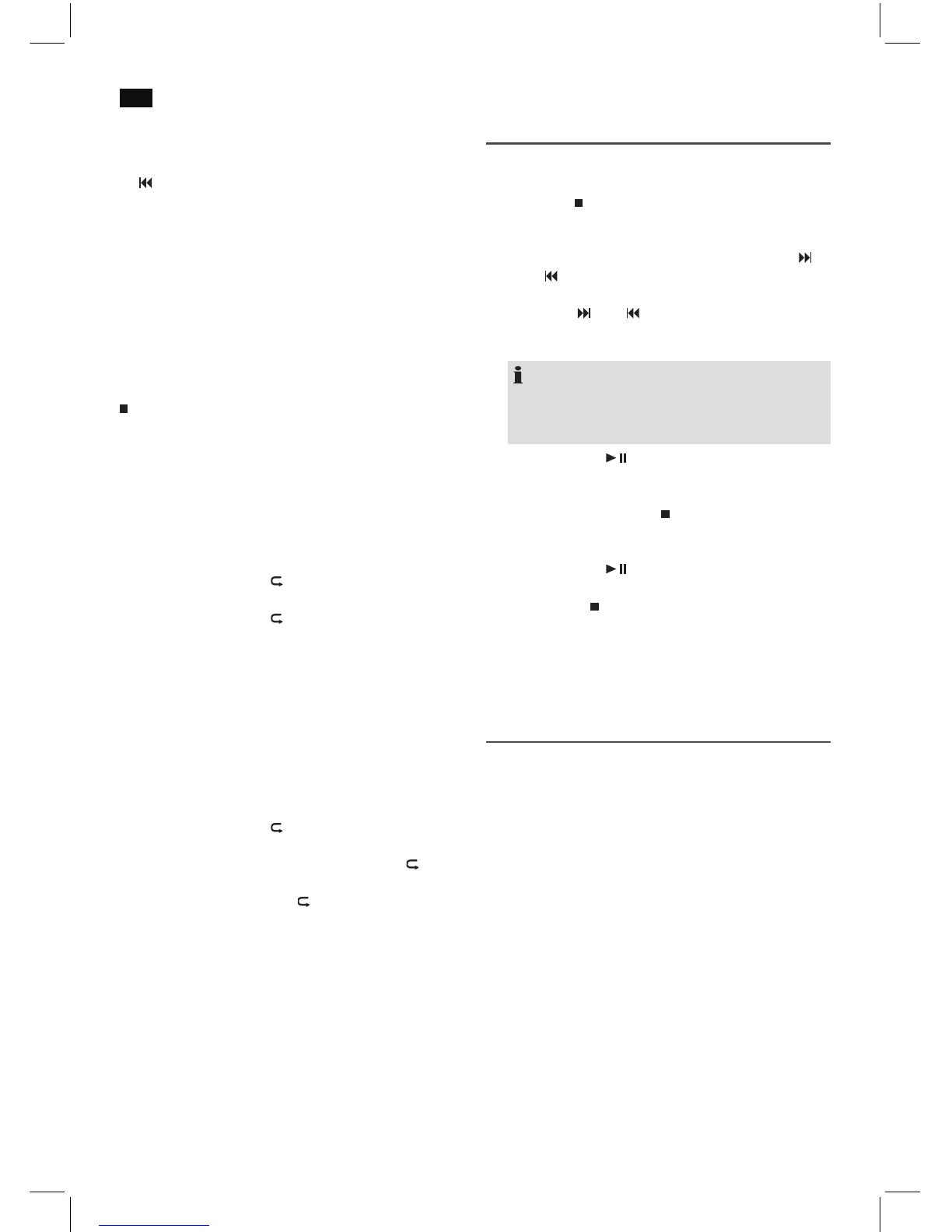 2 x indrukken = De complete CD wordt steeds herhaald. Het