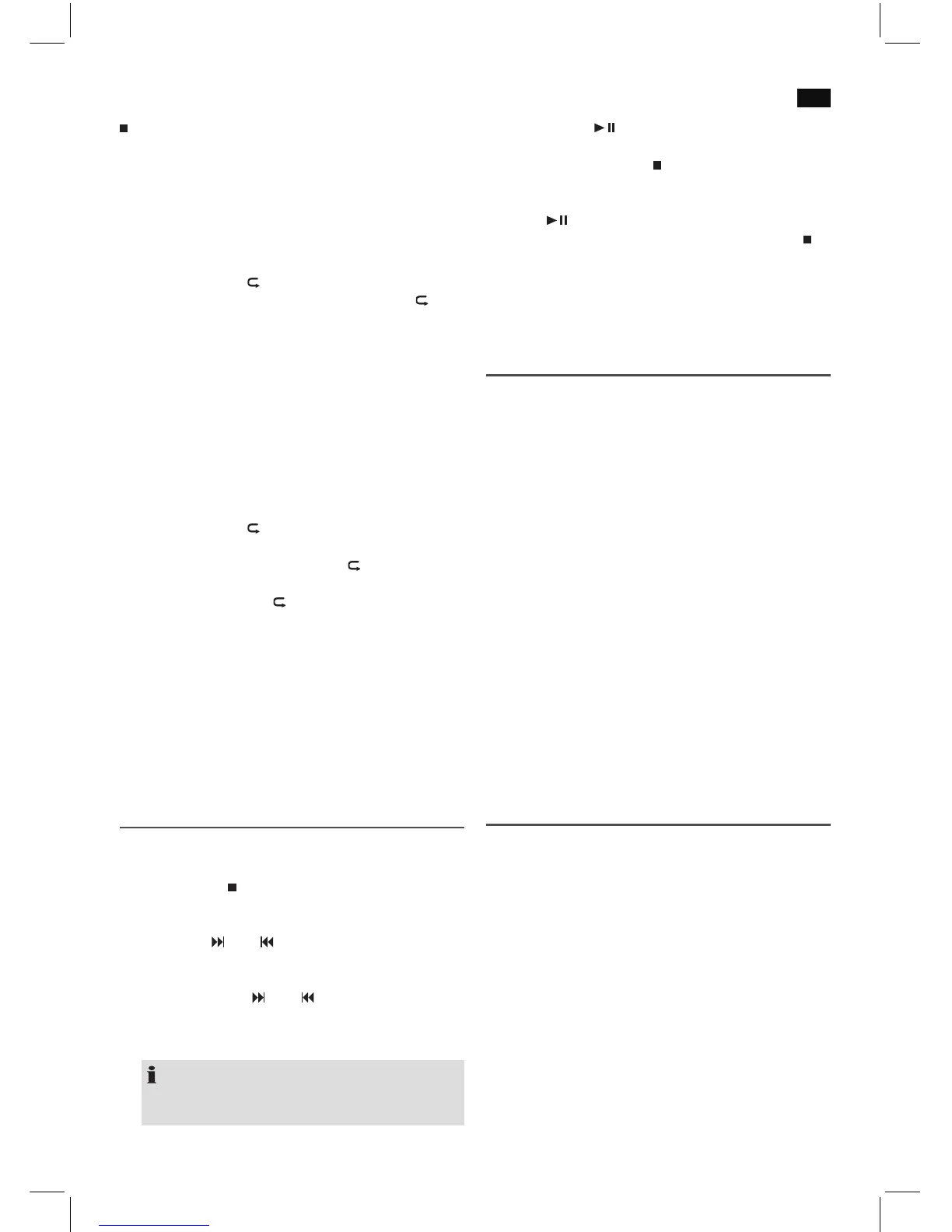 3x megnyomva = az összes zene folyamatosan ismételve
