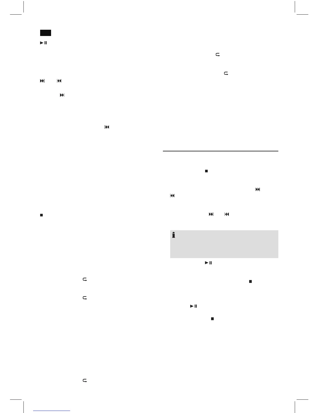 4 x натискування = Усі музичні записи будуть відтворюва-