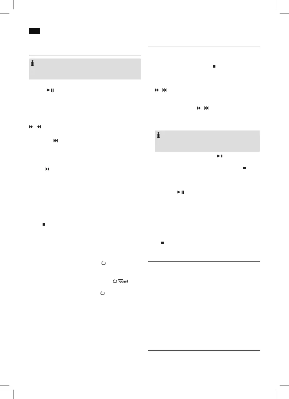 Naciśnięcie 1 x = Bieżąca ścieżka zostanie odtworzona