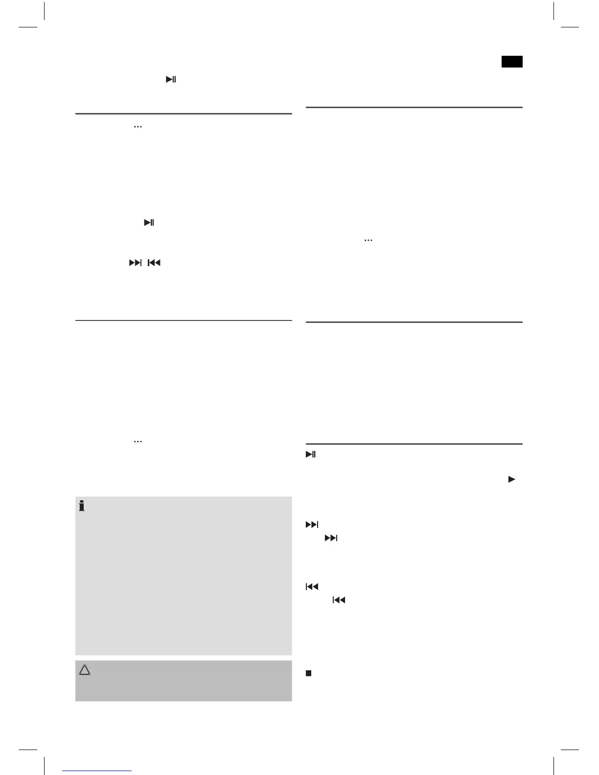 Premere 2 volte = Riproduce un brano precedente ecc.